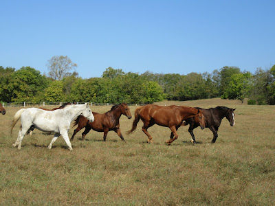 some days are a great day for a gallop; Gibson leading the way followed by Flyer, Lotus, Romeo and George . . .