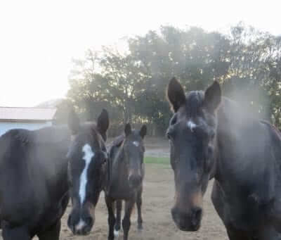 There are so many captions one could come up with for this picture. Instead of licking the fence or the gate or some other inanimate object like they often do after eating a meal, Apollo and Hemi instead chose to stand there and lick Thomas’ rump.